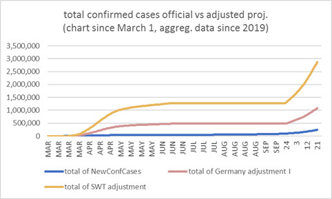 * -> However, while this is a value for todays confirmed cases, to be consistent with our conclusions above, we have to assume that, in the context of infections, this value refers to the situation 9 days ago. | |||||||||||||||||||||||||||||||||||||||||||