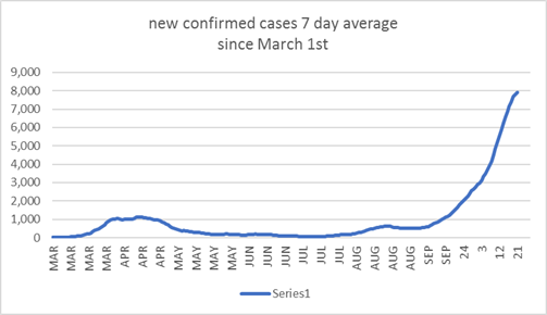 the data says: new cases for date: | 20201021 | 8,149 | -> In
