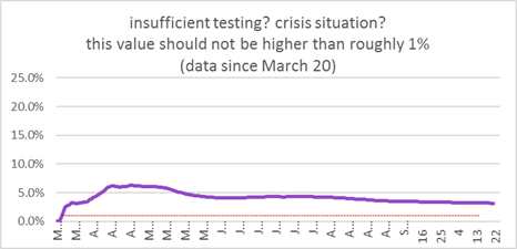 the pink line is calculated from the difference of the 8 day index and the 4 day index for confirmed cases. It is rather a slow lagging behind indicator and less sensitive to trend changes. | |||||||||||||||||||||||||||||||||||||||||||