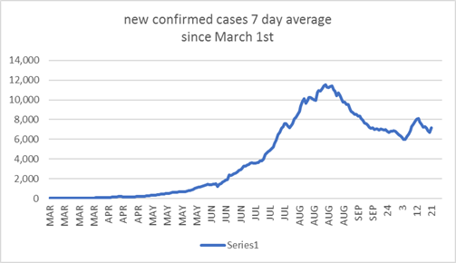 the data says: new cases for date: | 20201021 | 8,256 | -> In