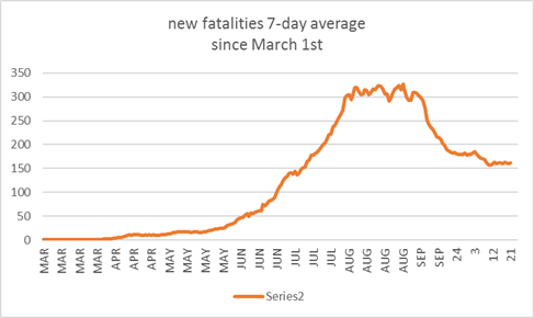 -> the 7 day average is used here. The actual number for days has too much statistical variance and is inconsistent because of data reporting methodologies. | |||||||||||||||||||||||||||||||||||||||||||