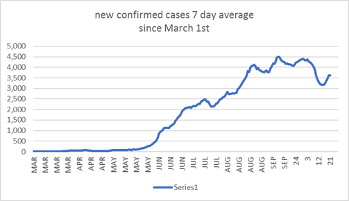 the data says: new cases for date: | 20201021 | 3,920 | -> In
