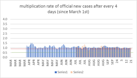 this means that there are 1 (1) times as many new reported cases as 4 (8) days before. | *this chart is explained below. | ||||||||||||||||||||||||||||||||||||||||||