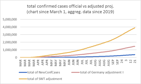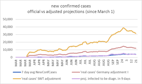* -> However, while this is a value for todays confirmed cases, to be consistent with our conclusions above, we have to assume that, in the context of infections, this value refers to the situation 9 days ago. | |||||||||||||||||||||||||||||||||||||||||||