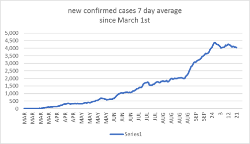 the data says: new cases for date: | 20201021 | 3,602 | -> In
