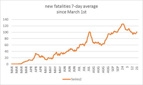 -> the 7 day average is used here. The actual number for days has too much statistical variance and is inconsistent because of data reporting methodologies. | |||||||||||||||||||||||||||||||||||||||||||