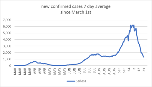 the data says: new cases for date: | 20201021 | 1,627 | -> In
