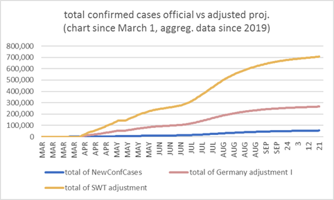 * -> However, while this is a value for todays confirmed cases, to be consistent with our conclusions above, we have to assume that, in the context of infections, this value refers to the situation 9 days ago. | |||||||||||||||||||||||||||||||||||||||||||