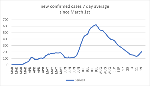 the data says: new cases for date: | 20201021 | 223 | -> In