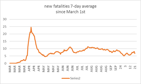 -> the 7 day average is used here. The actual number for days has too much statistical variance and is inconsistent because of data reporting methodologies. | |||||||||||||||||||||||||||||||||||||||||||