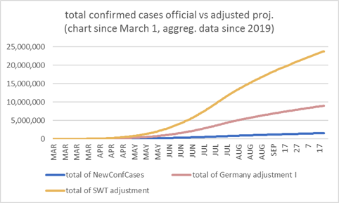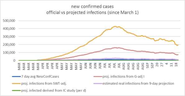 * -> However, while this is a value for todays confirmed cases, to be consistent with our conclusions above, we have to assume that, in the context of infections, this value refers to the situation 9 days ago. | |||||||||||||||||||||||||||||||||||||||||||