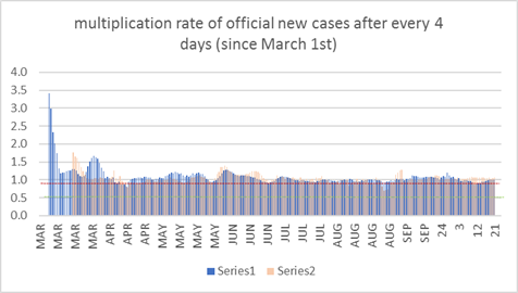 this means that there are 1 (1) times as many new reported cases as 4 (8) days before. | *this chart is explained below. | ||||||||||||||||||||||||||||||||||||||||||