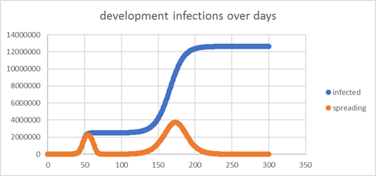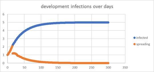 5(!) people would be infected after 300 days |