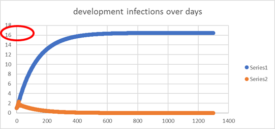 whole thing dies out sooner or later - at an average of 16 infected people |