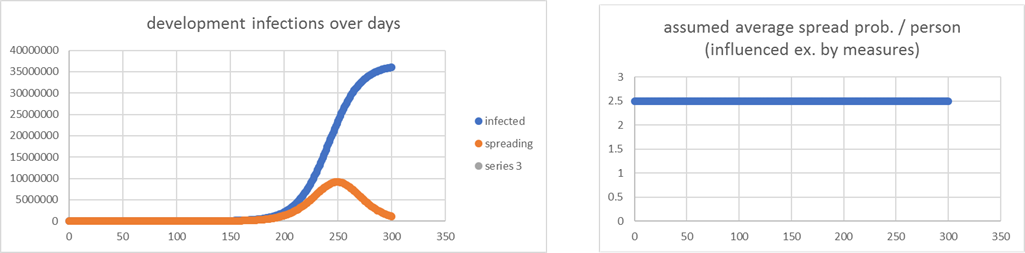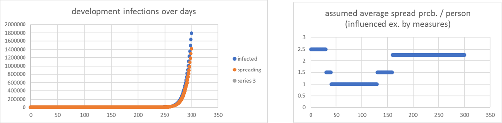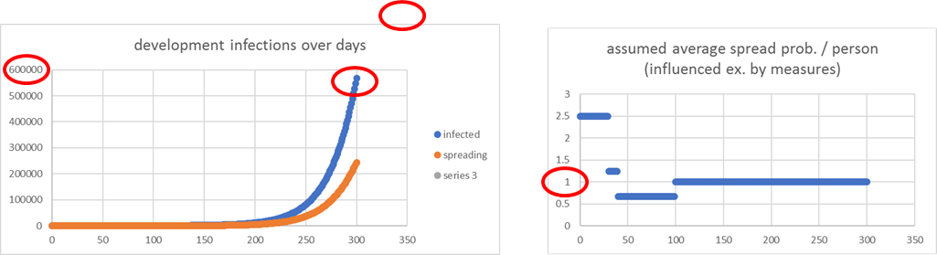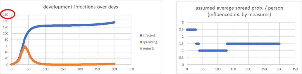 drastic measures, standard values, less strict after 100 days // because of clusterization infections